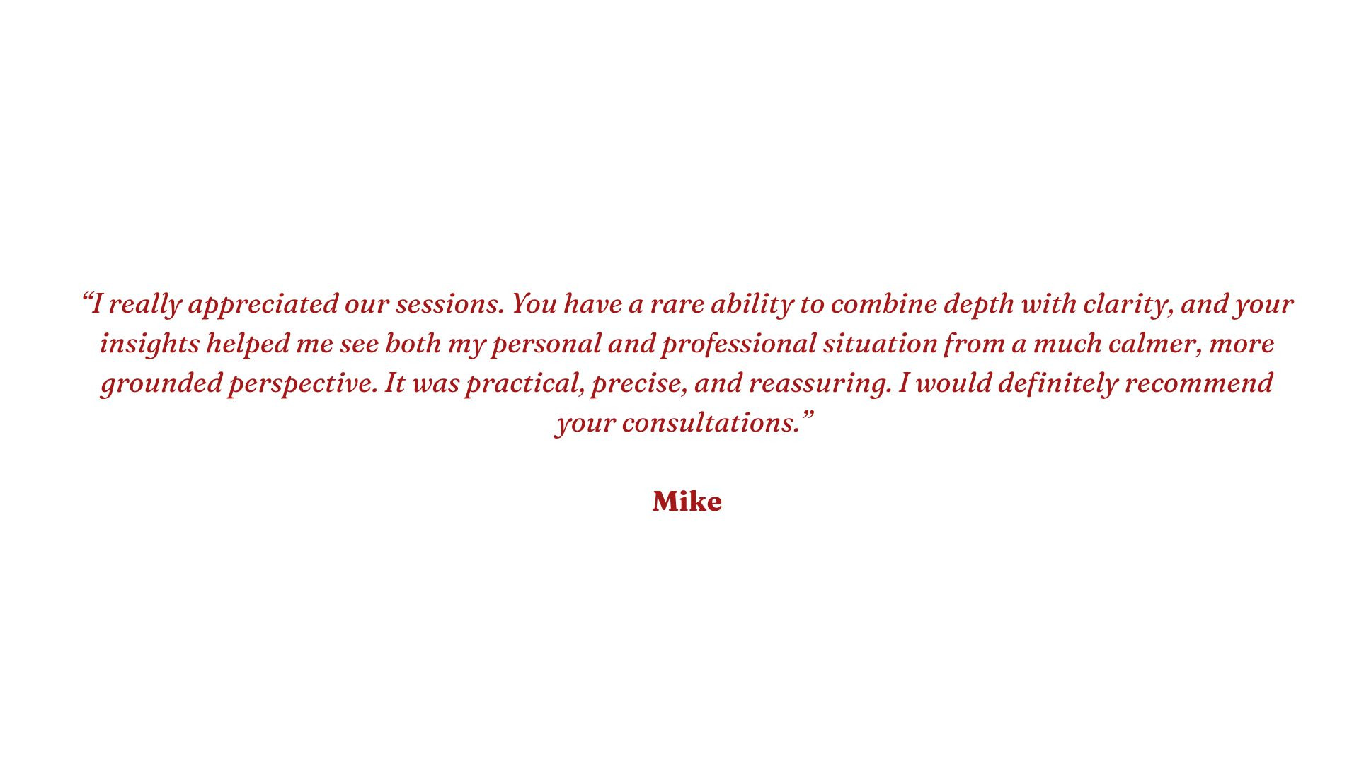 I also examine the current planetary movements to highlight important life phases that may bring opportunities for growth or periods that require deeper inner work. Rather than predicting specific events, my focus is on identifying meaningful archetypal patterns and timing cycles that shape your life journey.