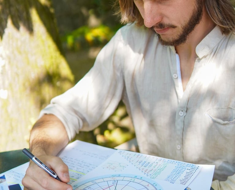 In a personal birth chart reading, I explore your natal chart, which shows the positions of the planets in the signs and houses at the moment of your birth. This allows insight into key character transits, potential talents, and possible challenges.